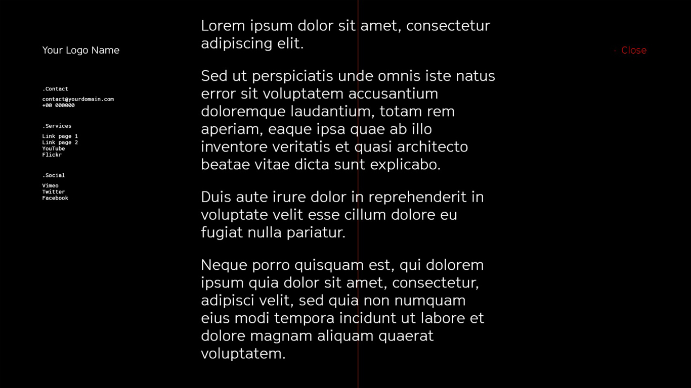 Creative unique design · Fully Responsive · WebGL page transitions and animations